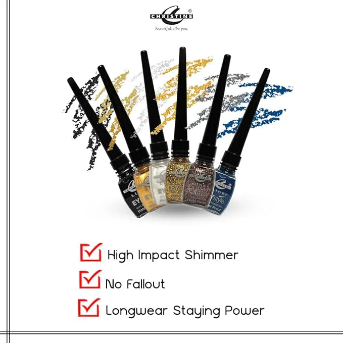 Unleash your sparkle with Christine Liquid Glitter Eyeliner. Shop now and make every eye look unforgettable!