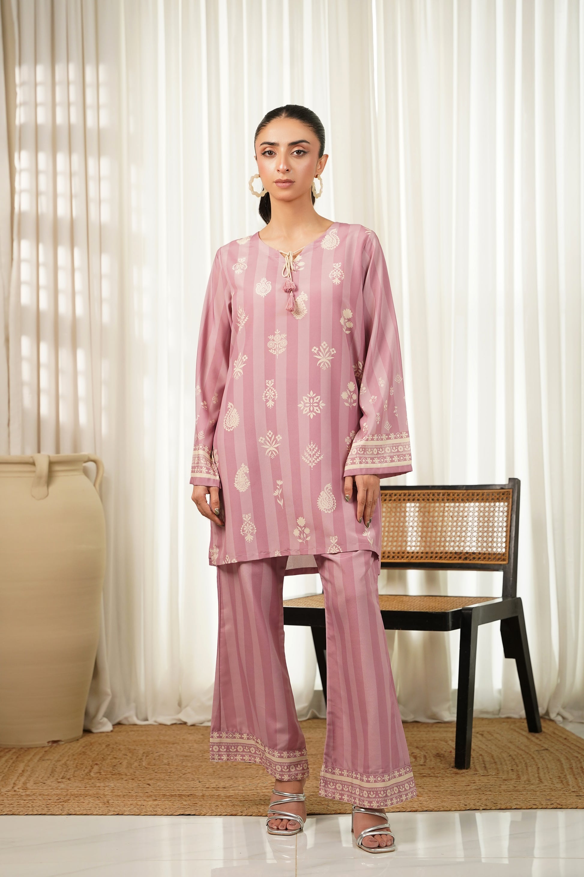 This 2 piece printed-colored co-ord set features luxurious and comfortable fabric and impeccable cuts given to every detail of the article, offering versatility and sophistication for any occasion.