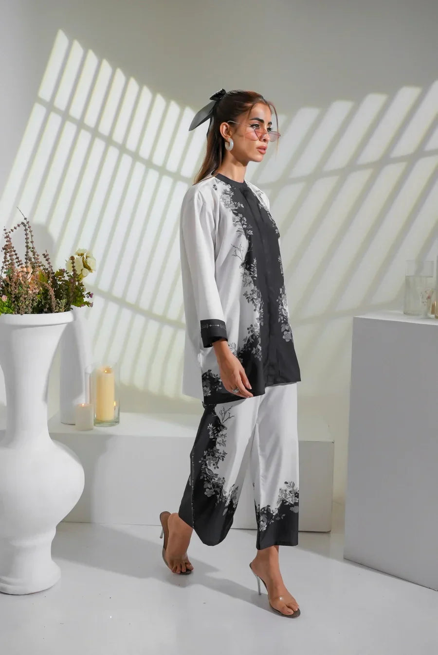 This 2 piece printed-colored co-ord set features luxurious and comfortable fabric and impeccable cuts given to every detail of the article, offering versatility and sophistication for any occasion.